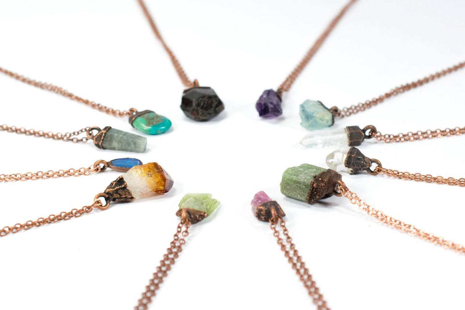 This listing is for one necklace. Celebrate the birth month of you or someone you love with a raw birthstone crystal strung on an 18" copper chain.