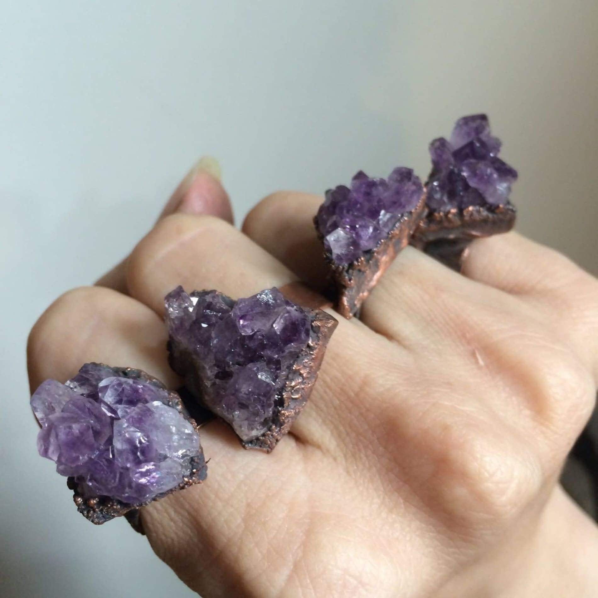 SALE Amethyst druzy ring | Amethyst crystal ring