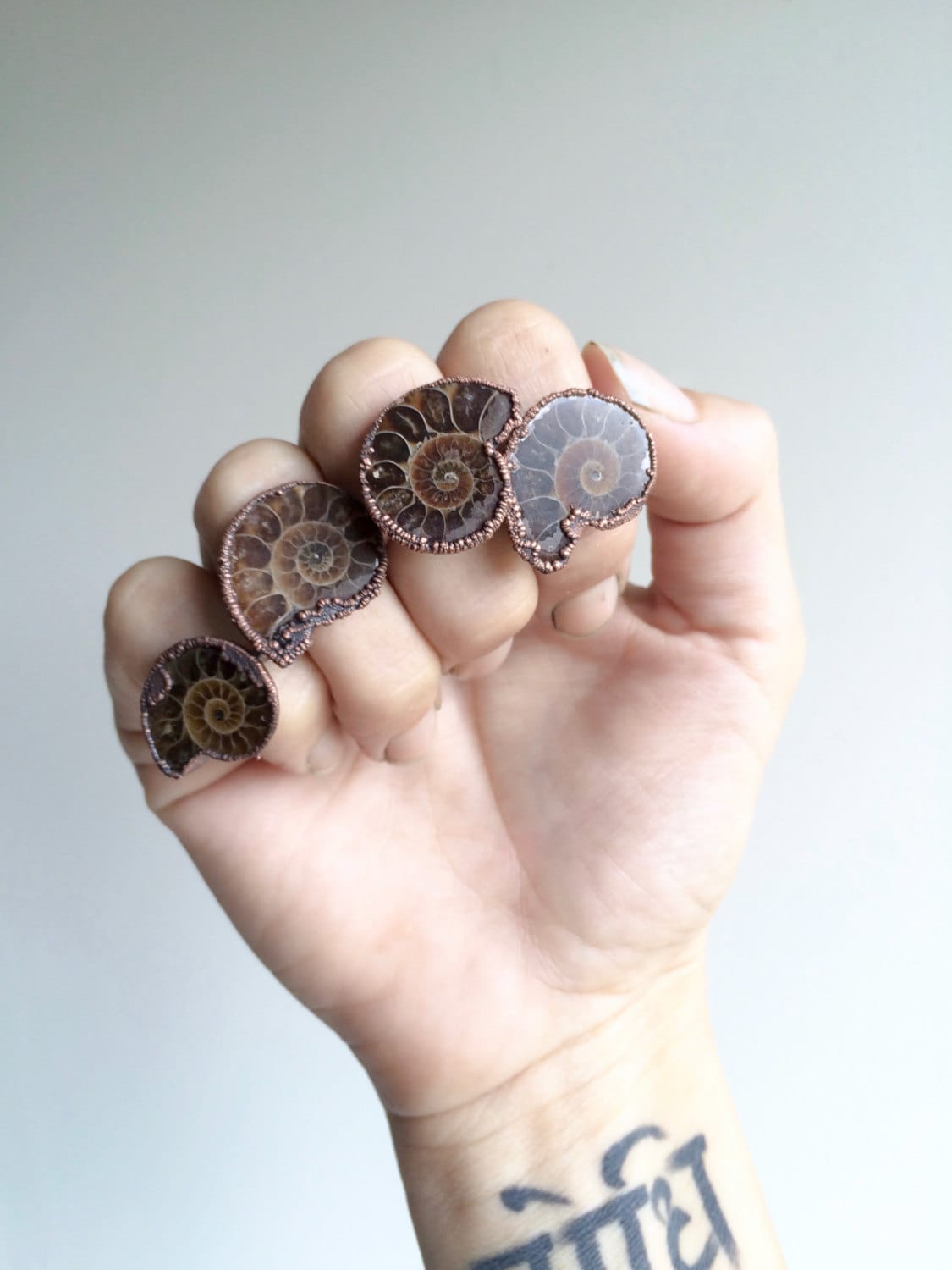 Earthy rings featuring raw crystal gemstones like amethyst, citrine and moonstone