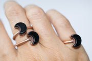 Black obsidian ring | Obsidian moon ring | Copper and natural obsidian jewelry | Raw stone ring | Obsidian Ring
