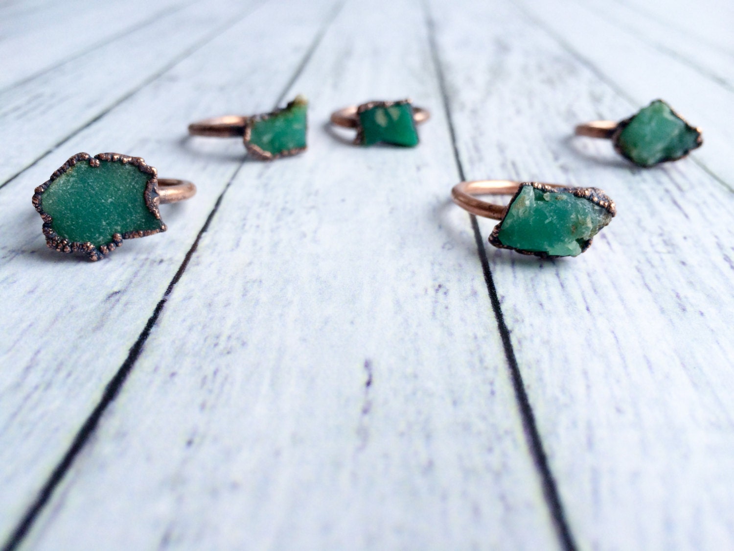Chrysoprase ring | Raw chrysoprase crystal ring | Green chrysoprase and recycled copper ring | May birthstone ring | May birthstone jewelry