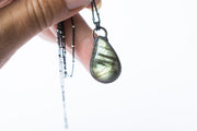 This listing is for one large labradorite cabochon electroformed and strung on a 24" sterling silver satellite chain.
