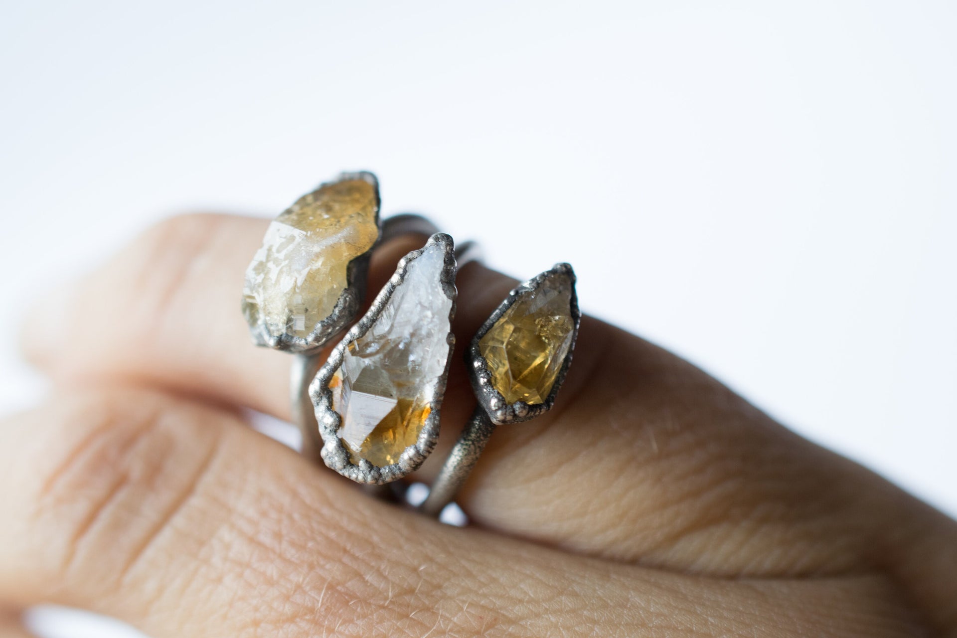 Oxidized Silver Citrine ring | Natural citrine ring | Raw citrine crystal jewelry | November Birthstone Ring | Raw Citrine Ring