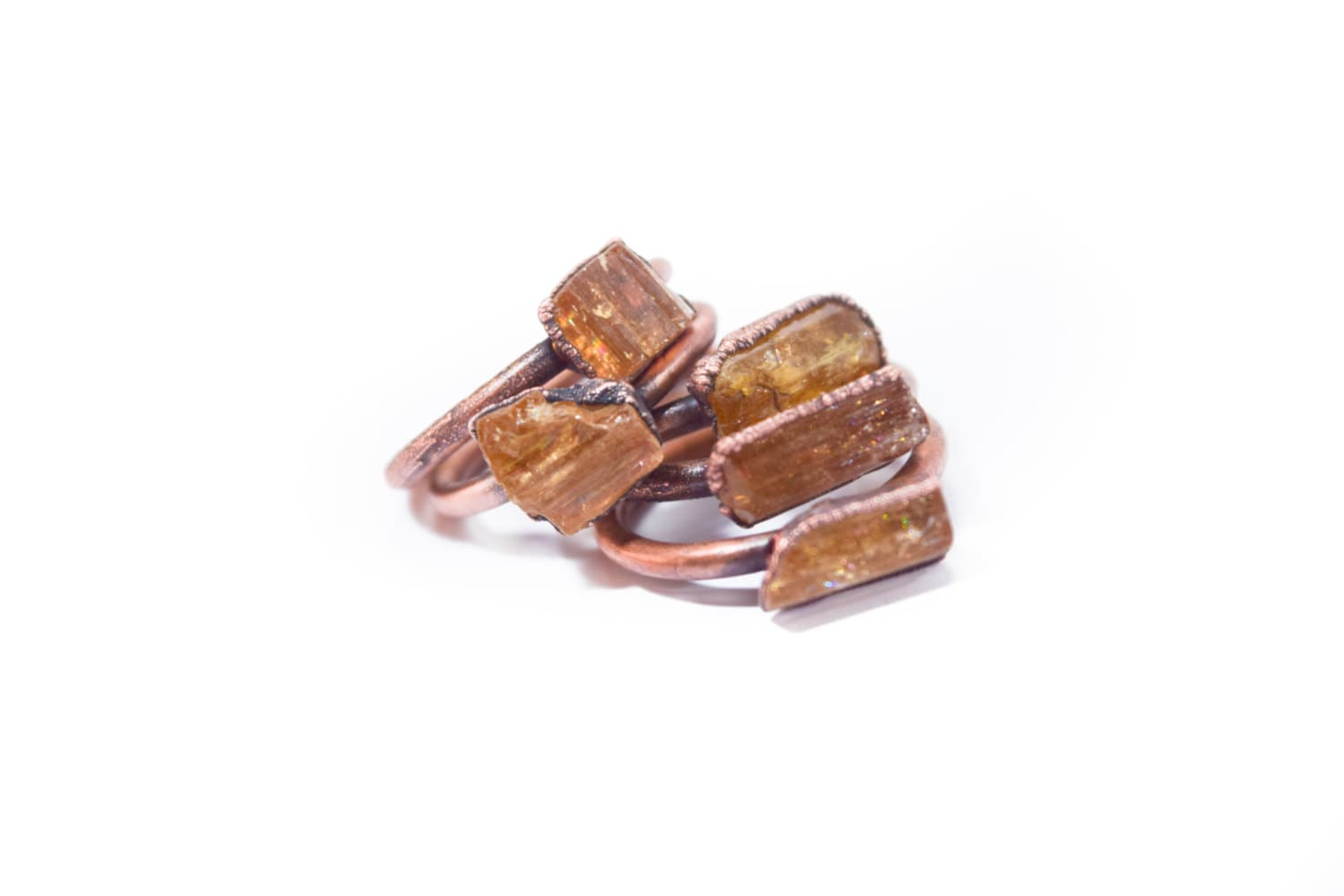 This listing is for one raw imperial topaz crystal electroformed to a hand-hammered 12 gauge recycled copper ring.