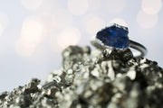 This listing is for one raw tanzanite crystal electroformed to a hand-hammered 12 gauge recycled copper ring plated in silver.