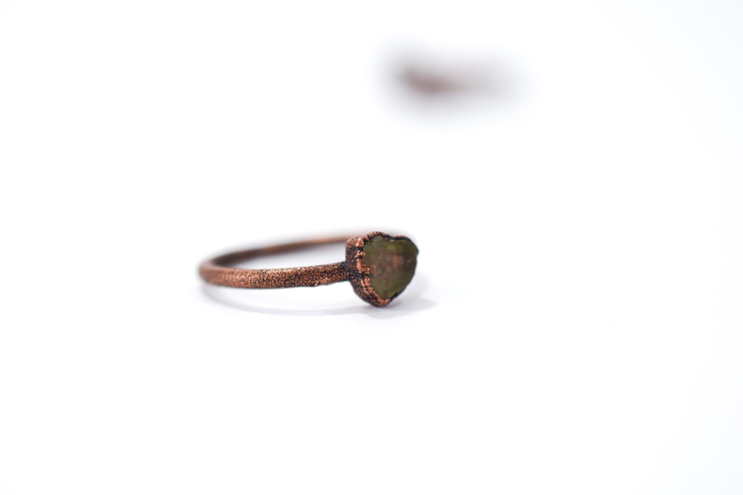 This listing is for one small raw watermelon tourmaline crystal electroformed to a hand-hammered 16 gauge recycled copper ring.